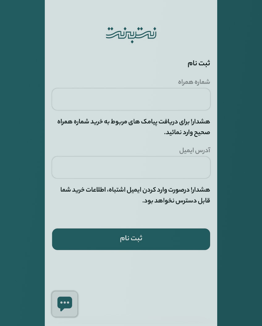3. شماره همراه و ایمیل خود را وارد کنید. و گزینه ثبت نام را بزنید.