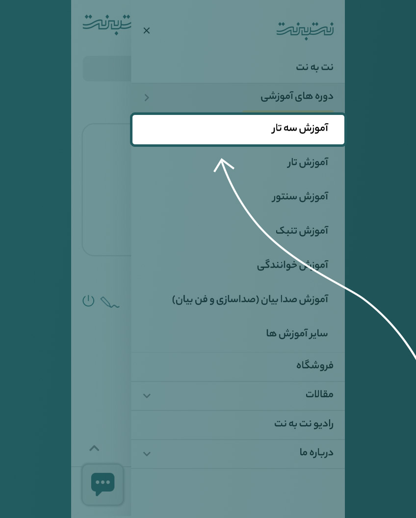 الف- از منوی باز شده، طبق عکس زیر آموزش سه تار را لمس یا کلیک کنید.